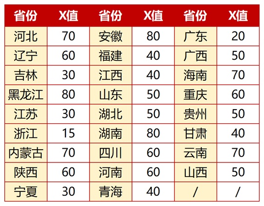 。ㄈ┪倚⒁罁(jù)公布的高校專項計劃分省分專業(yè)招生計劃,按照考生高考投檔成績從高分到低分依次擇優(yōu)錄取,同時根據(jù)我校招生章程規(guī)定的專業(yè)確定原則為考生分配專業(yè)。非高考綜合改革省份考生高考投檔成績(含政策性加分)須達考生生源地我校理科最終模擬投檔線(不含中外合作辦學相關專業(yè),下同)下30分(含)之內(nèi),且不低于生源地本科第一批次錄取控制分數(shù)線(對于合并本科批次省份,要求為不低于省級招生考試主管部門劃定的特殊類型招生最低錄取控制參考分數(shù)線)。對實行高考綜合改革的省份,要求高考成績達到當?shù)厥〖壵猩荚囍鞴懿块T確定的特殊類型招生最低錄取控制參考分數(shù)線上X分及以上,具體X值如下表: