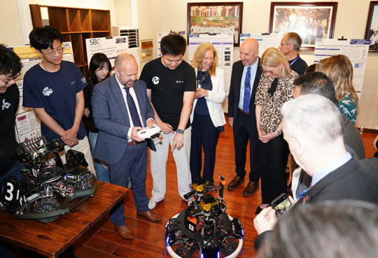 2025年5月,團(tuán)隊(duì)成員向利物浦市副市長(zhǎng)代表團(tuán)演示了其自主研發(fā)并組裝的機(jī)器人