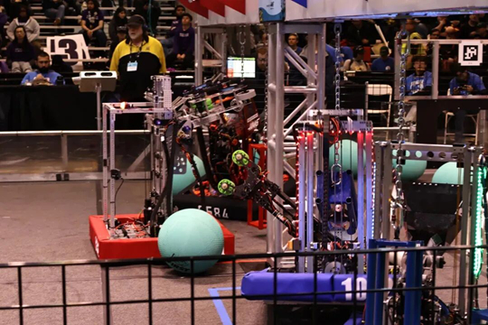 然而,海外征途并非一帆風(fēng)順。曾雨淇團(tuán)隊(duì)首先遭遇了設(shè)備電壓差異的挑戰(zhàn)——從國(guó)內(nèi)帶去的焊臺(tái)無法適應(yīng)美國(guó)120V電壓,導(dǎo)致維修工具失效。緊急時(shí)刻,在3925隊(duì)的慷慨幫助下,他們借助對(duì)方的場(chǎng)地和設(shè)備完成關(guān)鍵零件的切割和調(diào)試,化解了危機(jī)。此外,比賽場(chǎng)地的光線條件與訓(xùn)練環(huán)境有所不同,對(duì)機(jī)器人的視覺識(shí)別系統(tǒng)提出考驗(yàn)。團(tuán)隊(duì)迅速調(diào)整攝像頭參數(shù)與曝光補(bǔ)償,確保了機(jī)器人可以通過AprilTag這一視覺基準(zhǔn)系統(tǒng)進(jìn)行全場(chǎng)定位。