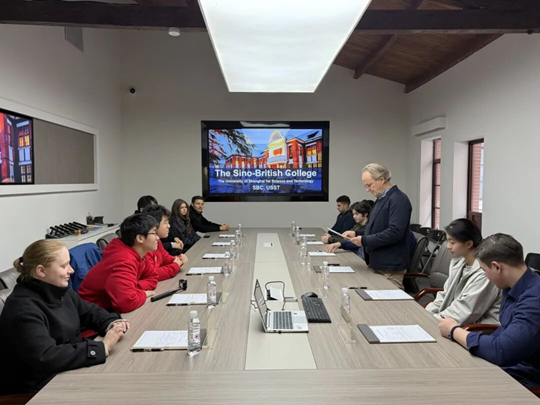 參訪第一站來到復(fù)興路校區(qū)具有百年歷史的鐘樓,這座建筑現(xiàn)為上海理工大學(xué)復(fù)興路校區(qū)的校史館。在館內(nèi)會(huì)議室,中英國際學(xué)院教師James Leggate為師生作了學(xué)院基本情況介紹,系統(tǒng)闡述了學(xué)院辦學(xué)特色,并詳細(xì)介紹了學(xué)院獨(dú)特的課程體系。通過講解與交流,國際學(xué)生了解到學(xué)校自2006年以來與英國高校開展合作辦學(xué),共同創(chuàng)辦了中英國際學(xué)院。學(xué)院的“一對多”合作辦學(xué)模式、創(chuàng)新人才培養(yǎng)理念以及計(jì)劃內(nèi)雙學(xué)位項(xiàng)目(即同時(shí)獲得上海理工大學(xué)學(xué)位與英方合作院校學(xué)位)為學(xué)生們帶來了獨(dú)特優(yōu)勢。互動(dòng)環(huán)節(jié)中,同學(xué)們針對課程設(shè)置與學(xué)習(xí)體驗(yàn)積極提問,James均作了詳細(xì)解答。一名漢語言生表示,James老師的講解讓他對中英國際學(xué)院的學(xué)習(xí)生活產(chǎn)生了濃厚興趣。